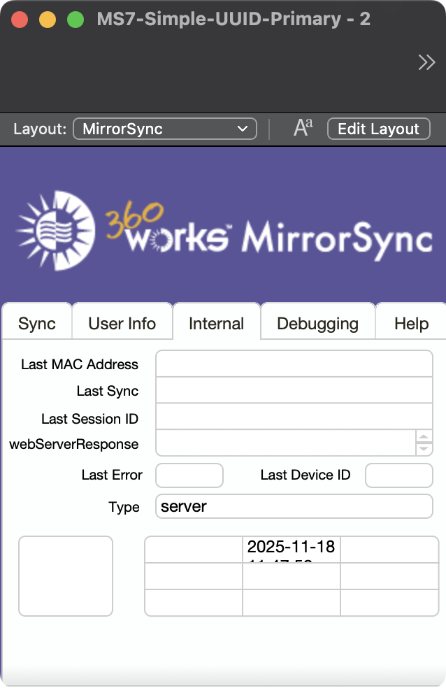 Open the database and navigate to the MirrorSync layout: